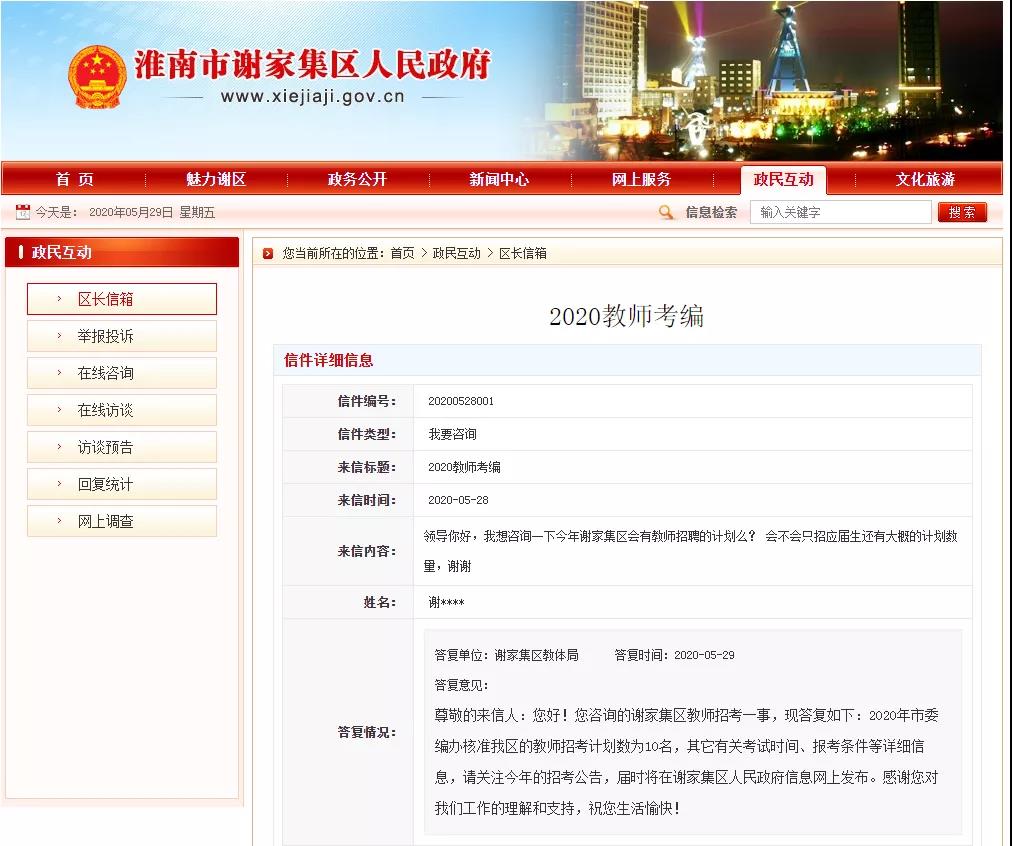 2020淮南謝集區(qū)計(jì)劃招聘中小學(xué)教師10人