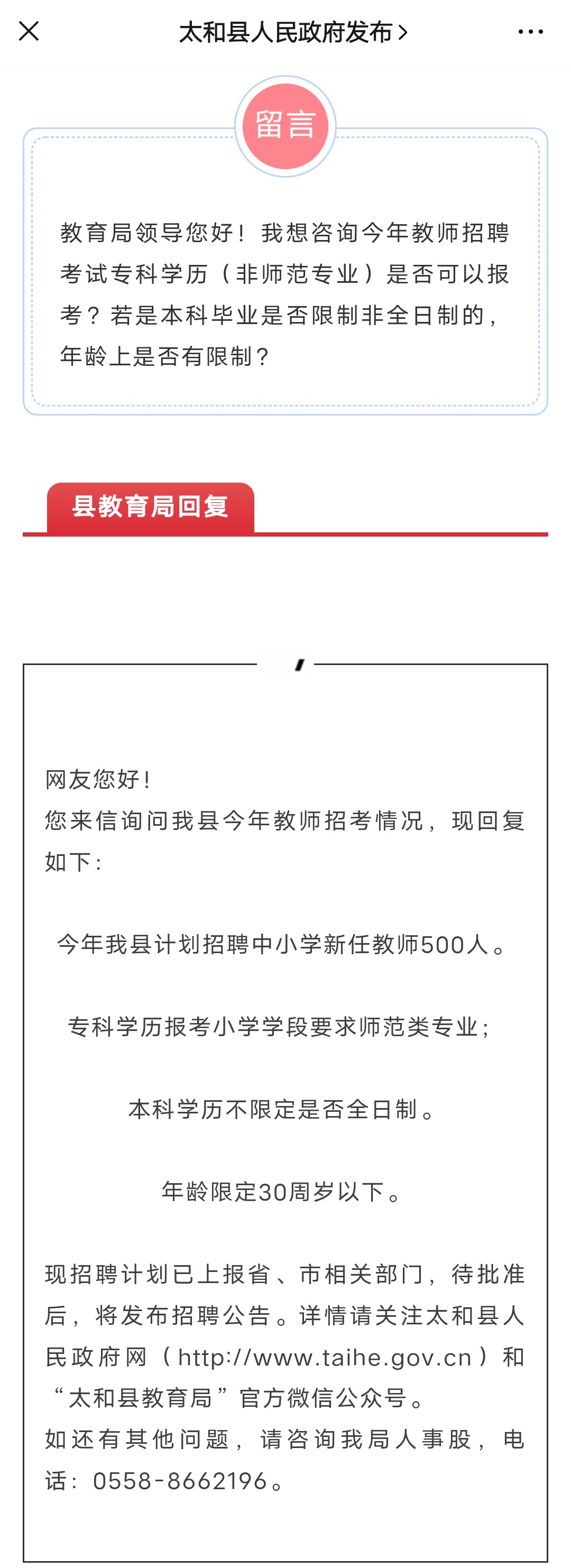 本文【2020阜陽太和縣計劃招聘中小學(xué)新任教師500人】來源于太和縣人民政府,具體最終信息請以太和縣人民政府為準(zhǔn)!