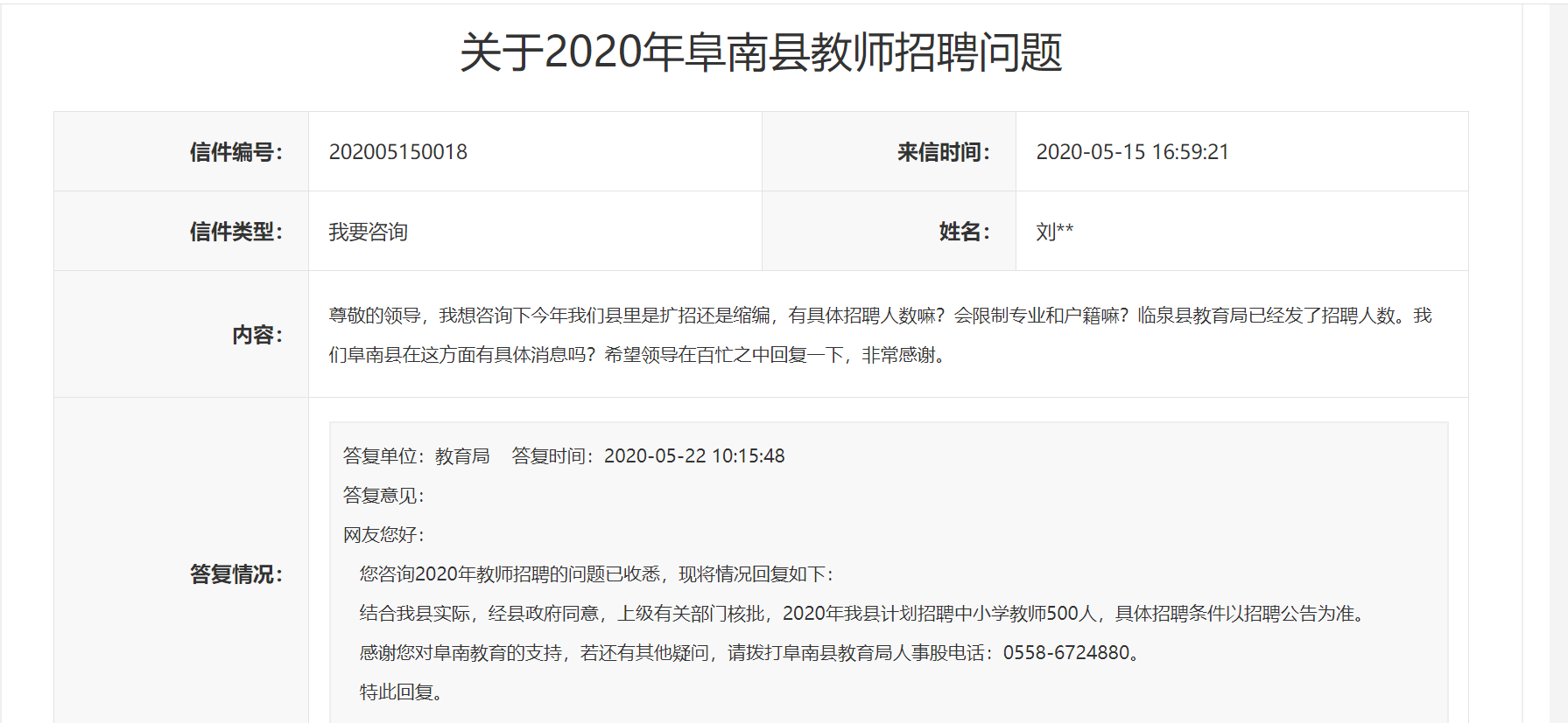 本文【2020阜陽阜南縣計劃招聘中小學(xué)教師500人】來源于阜南縣人民政府,具體最終信息請以阜南縣人民政府為準!