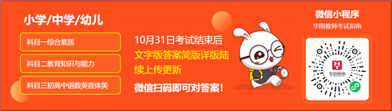 2020年教師資格證考試即將舉行,教師資格證考試時間為10月31日,考生應(yīng)提前做好準備,打印準考證,確認考點,做好最后的復(fù)習等??忌€可提前關(guān)注微信小程序“華圖教師考試指南”,可以在考試結(jié)束后的就第一時間對答案,看解析,了解相應(yīng)題目的問題。