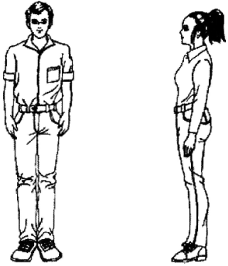 (1)一進(jìn)場,考生要步伐穩(wěn)健,用眼角余光掃視全場。面帶微笑站定,雙腳呈45。分開,眼注視前方。