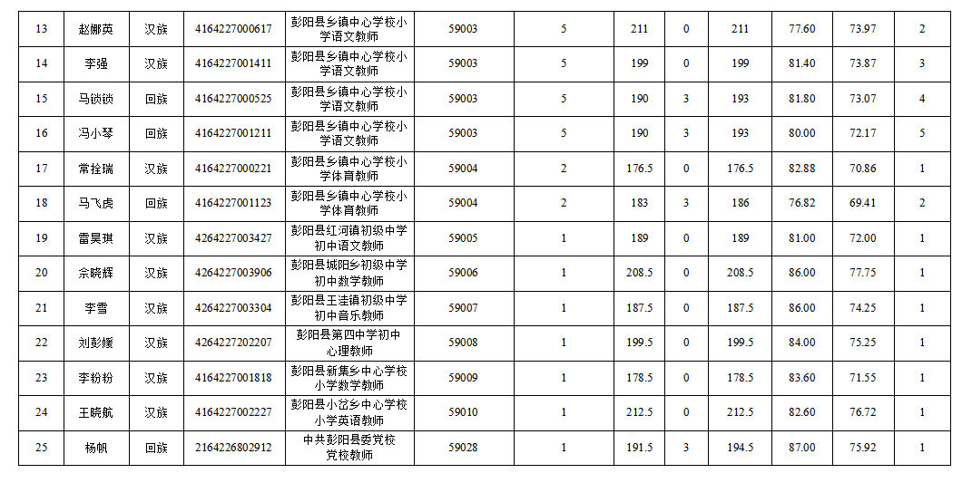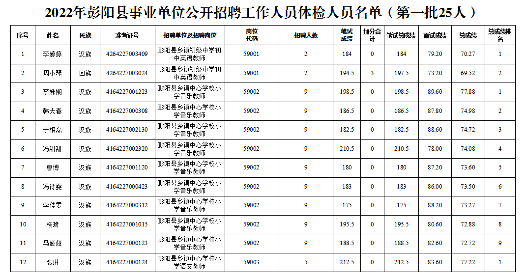 附件:2022年彭陽縣事業(yè)單位公開招聘工作人員體檢人員名單(第一批25人)