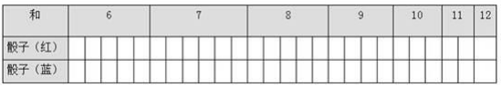 ①繼續(xù)游戲:兩人一組,輪流擲,和是多少就在對(duì)應(yīng)的數(shù)字上方涂一格。涂滿其中任意一列,游戲結(jié)束。
