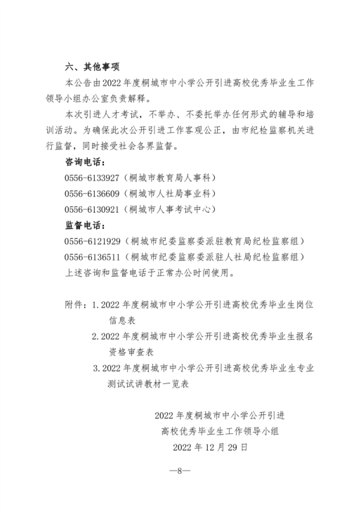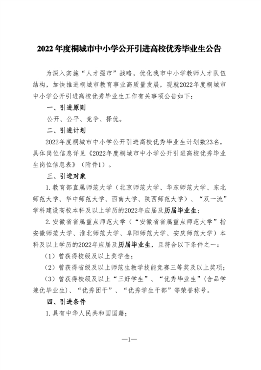 原文標(biāo)題:2022年安徽安慶桐城市中小學(xué)公開(kāi)引進(jìn)高校優(yōu)秀畢業(yè)生教師公告【23人】
