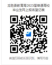 報(bào)名方式:登錄微信掃描下方二維碼進(jìn)入龍勝各族自治縣教育局招聘2023屆普通高校畢業(yè)生網(wǎng)上報(bào)名系統(tǒng)進(jìn)行報(bào)名。