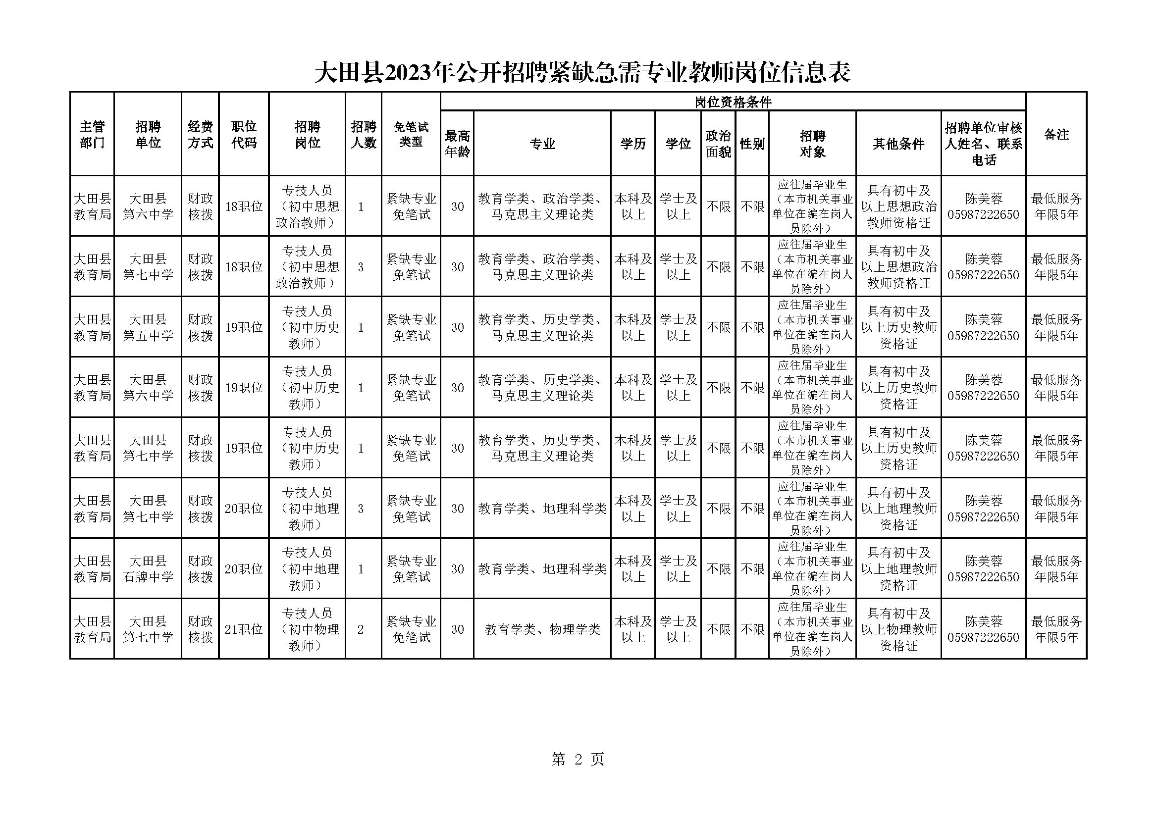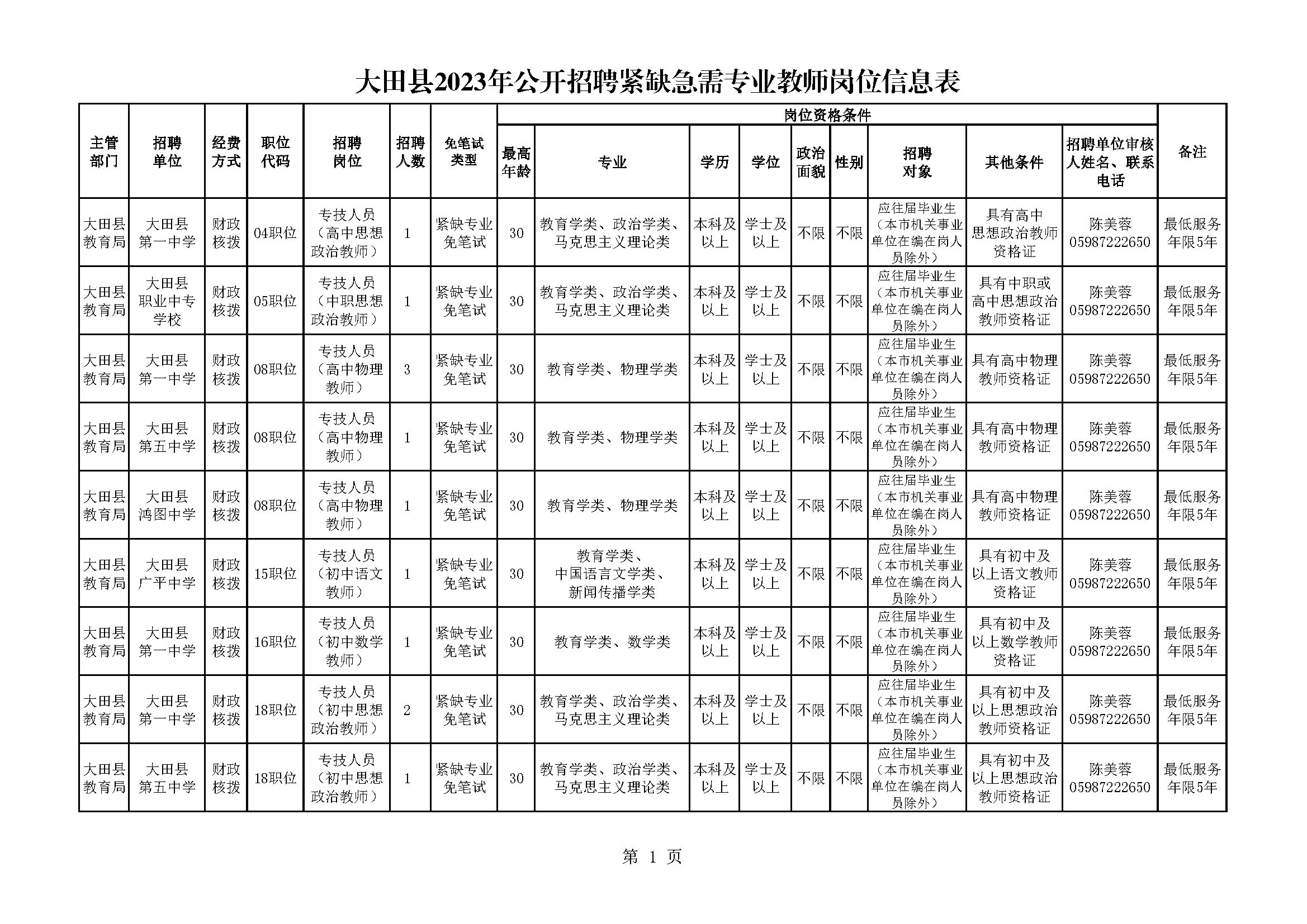 大田縣2023年公開招聘緊缺急需專業(yè)教師崗位信息表.pdf