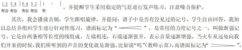 最后,我會引導(dǎo)學(xué)生加歌詞完整演唱歌曲,糾正歌詞及旋律的對應(yīng)問題。然后完整而有感情地演唱歌曲。