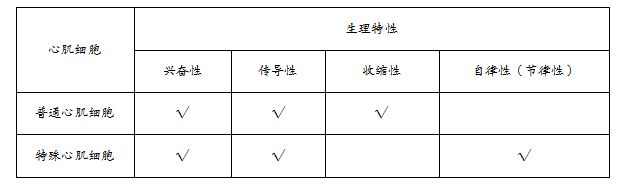 普通心肌細(xì)胞(包括心房肌和心室肌),具有興奮性、傳導(dǎo)性、收縮性,但不具有自律性。