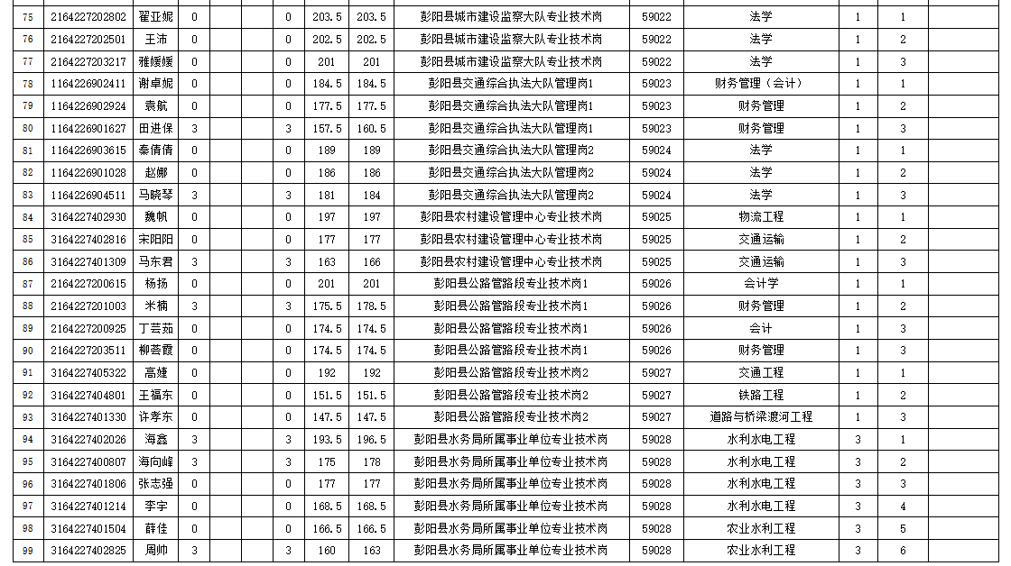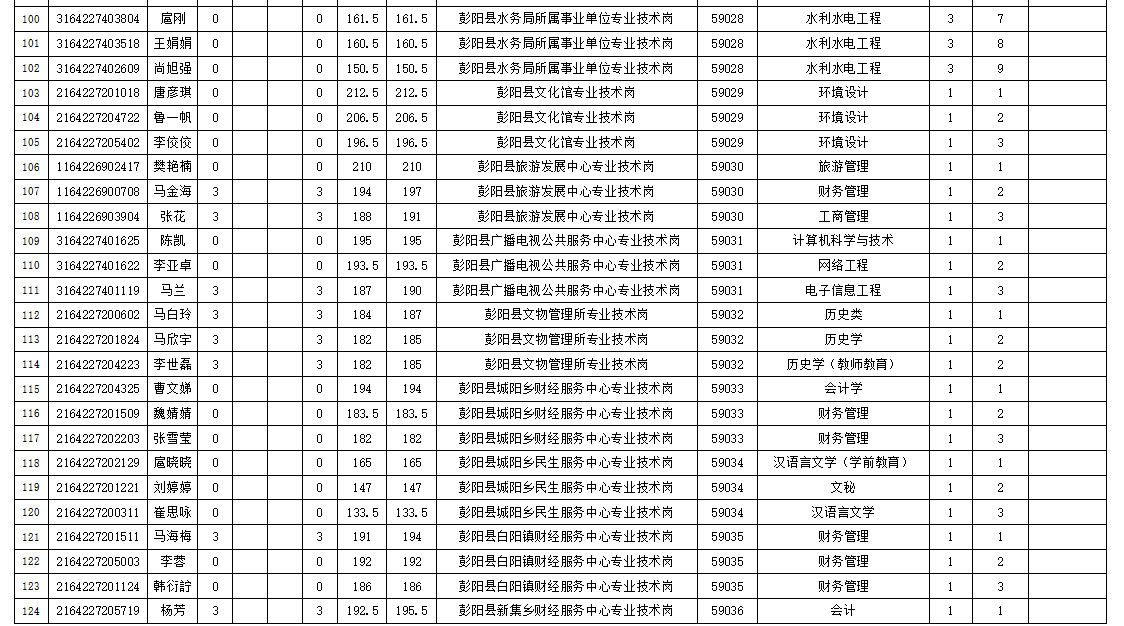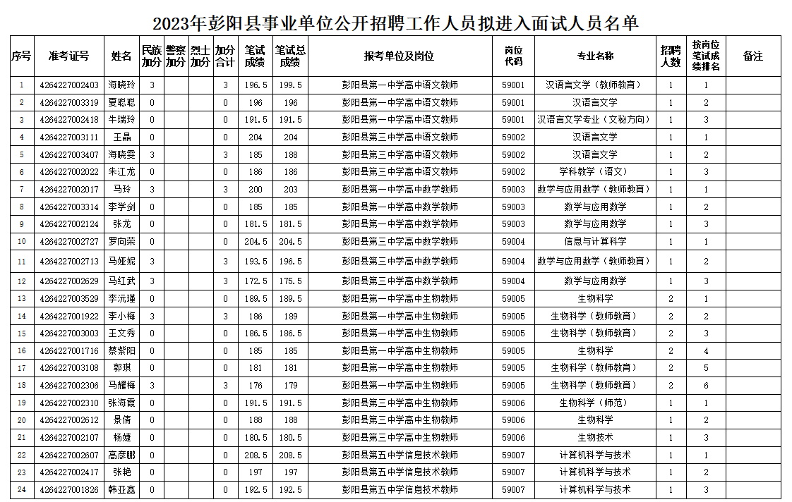 按照《寧夏回族自治區(qū)2023年事業(yè)單位公開招聘工作人員公告》《寧夏回族自治區(qū)2023年事業(yè)單位公開招聘筆試最低分?jǐn)?shù)控制線公告》要求,彭陽(yáng)縣人力資源和社會(huì)保障局于6月6日至7日對(duì)2023年我縣事業(yè)單位公開招聘工作人員(除事業(yè)編警務(wù)人員外)擬進(jìn)入面試環(huán)節(jié)的考生進(jìn)行資格復(fù)審,現(xiàn)將復(fù)審結(jié)果予以公示,公示時(shí)間為2023年6月8日至12日(3個(gè)工作日)。公示期間,如反映公示對(duì)象存在問題或問題線索,可采取打電話、寫信或來訪的方式,向彭陽(yáng)縣人力資源和社會(huì)保障局舉報(bào)。來信請(qǐng)寄:彭陽(yáng)縣人力資源和社會(huì)保障局辦公室,郵編756500。舉報(bào)電話:0954-7012396。接受舉報(bào)電話和來訪舉報(bào)時(shí)間為公示期間每天上午8:30-12:00,下午14:30-18:30。