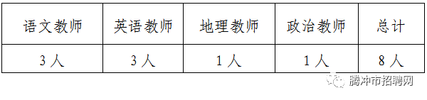 高中語文教師3名,高中英語教師3名,高中地理教師1名,高中政治教師1名。