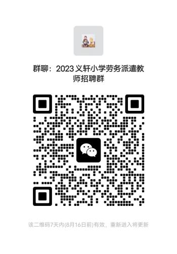 符合招聘條件的,請(qǐng)掃描下方二維碼,登記報(bào)名信息,并加入2023義軒小學(xué)勞務(wù)派遣教師招聘群。
