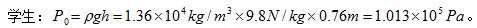 請(qǐng)同學(xué)計(jì)算標(biāo)準(zhǔn)大氣壓為多少。