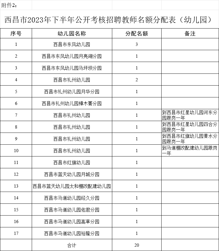 2.西昌市2023年下半年公開考核招聘教師名額分配表(幼兒園) |