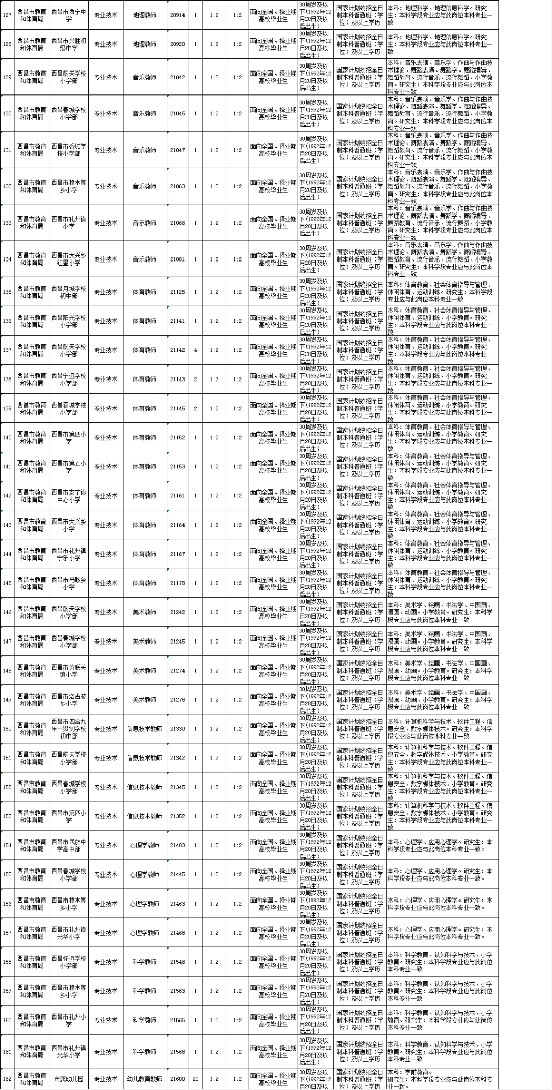 4.西昌市2023年下半年公開考核招聘教師崗位和條件要求一覽表2 |
