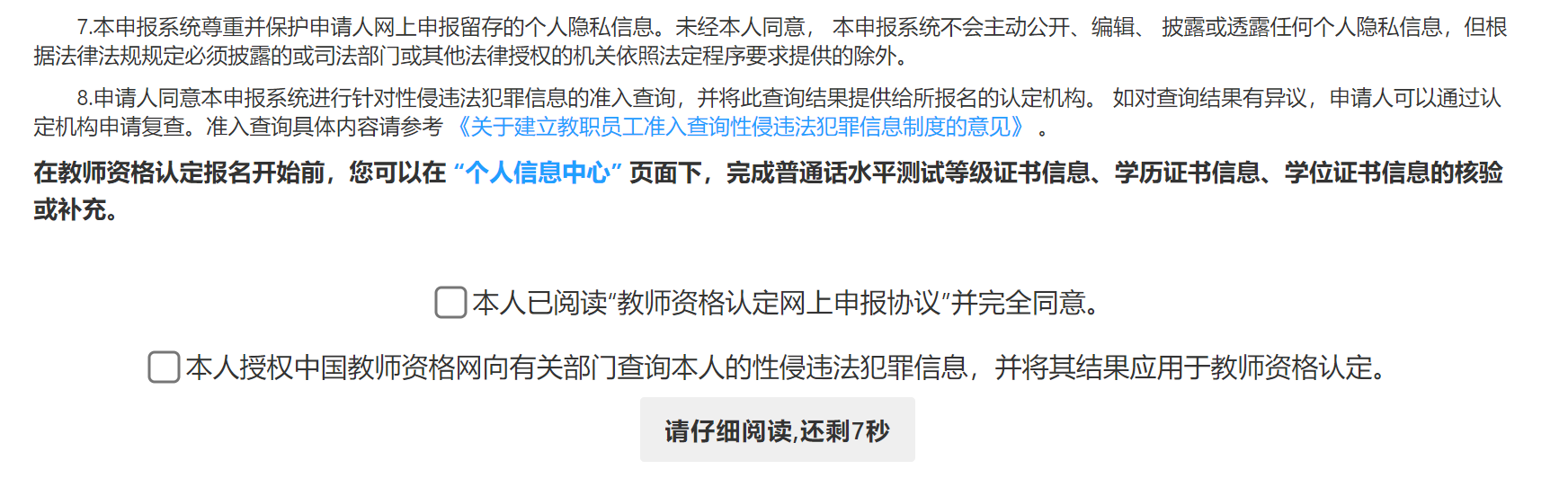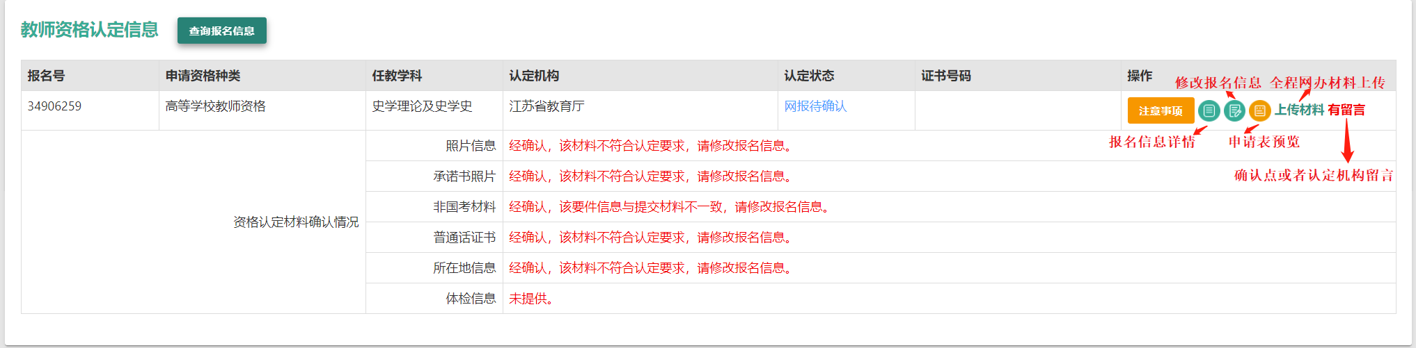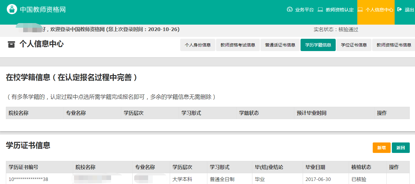 注意:如果信息未同步,需先確認(rèn)本次注冊(cè)的姓名、身份證件號(hào)碼等個(gè)人信息是否與考試合格證明或者《師范生教師職業(yè)能力證書(shū)》上的個(gè)人信息一致??蓞⒖?/span>網(wǎng)站“常見(jiàn)問(wèn)題”欄目相關(guān)問(wèn)題說(shuō)明處理。