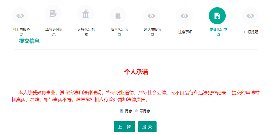 (三)申請(qǐng)人應(yīng)如實(shí)提交相關(guān)材料,并對(duì)所填報(bào)的個(gè)人信息提供的現(xiàn)場(chǎng)審核材料的準(zhǔn)確性、真實(shí)性負(fù)責(zé);故意弄虛作假,騙取教師資格的將依據(jù)國(guó)家有關(guān)規(guī)定進(jìn)行處理。