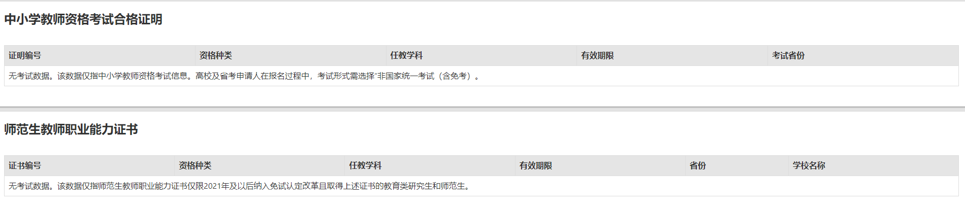 教師資格考試信息:只有參加了國(guó)家中小學(xué)教師資格考試且成績(jī)合格的申請(qǐng)人,此處才會(huì)自動(dòng)同步考試合格證明上的相關(guān)信息。