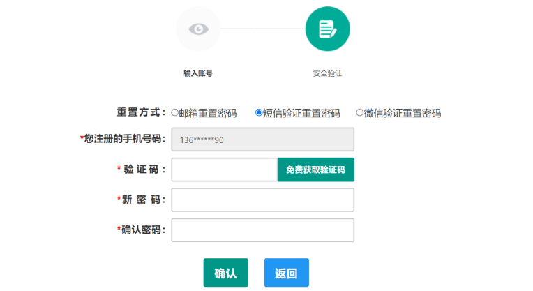 短信驗(yàn)證重置密碼:點(diǎn)擊【獲取短信驗(yàn)證碼】按鈕,輸入該賬號(hào)的注冊(cè)手機(jī)所收到的短信驗(yàn)證碼,填寫(xiě)新密碼并再次確認(rèn)新密碼后點(diǎn)擊【確認(rèn)修改】按鈕。如已更換手機(jī)號(hào)或該手機(jī)號(hào)無(wú)法接收短信驗(yàn)證碼,可按網(wǎng)站首頁(yè)“常見(jiàn)問(wèn)題2”的說(shuō)明發(fā)郵件申請(qǐng)修改手機(jī)號(hào)。