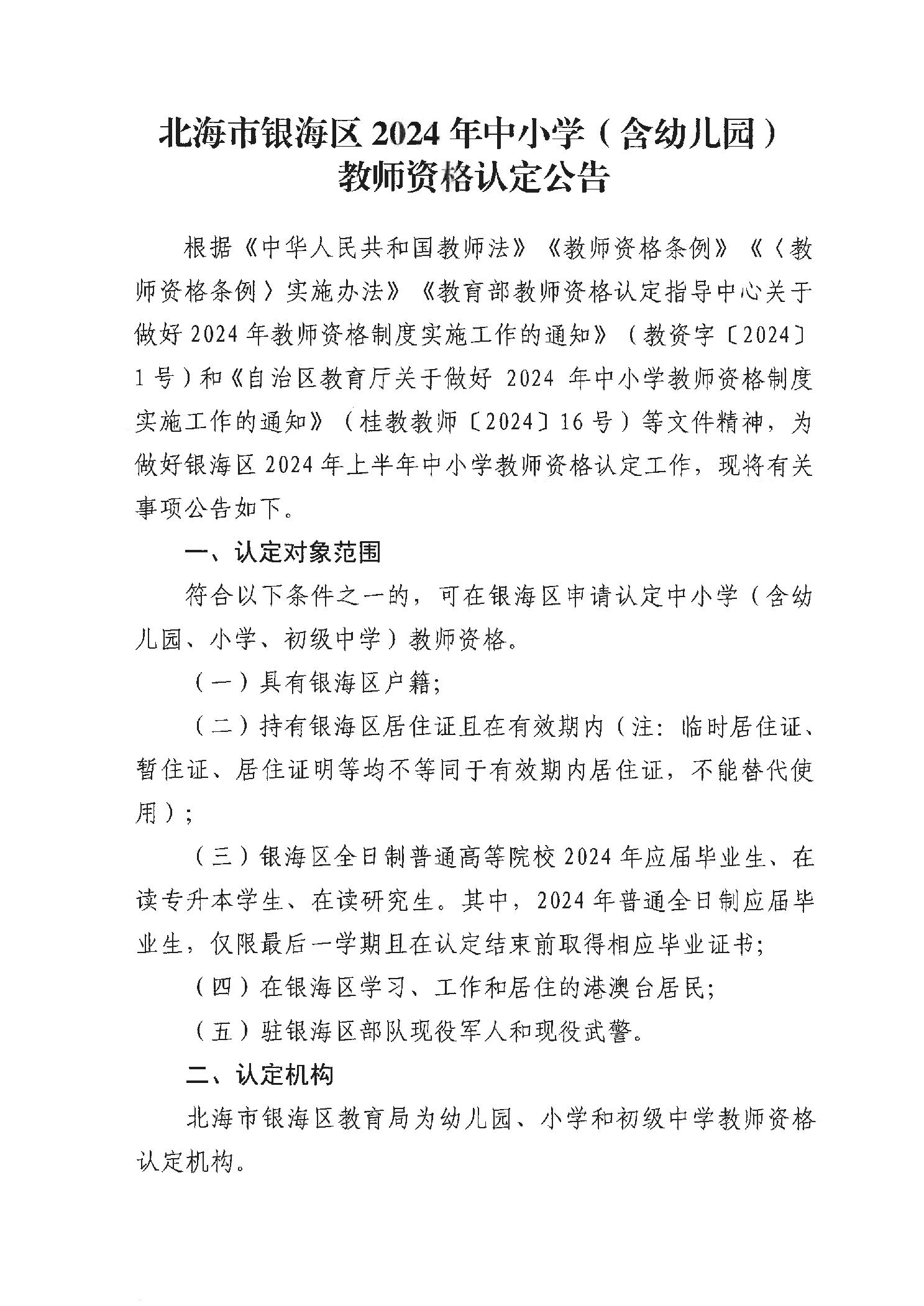 原文標(biāo)題:北海市銀海區(qū)2024年中小學(xué)(含幼兒園)教師資格認(rèn)定公告