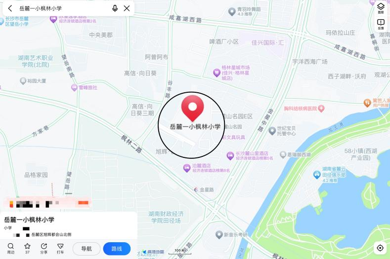 4.建議使用“高德地圖”搜索“岳麓一小楓林學校”。