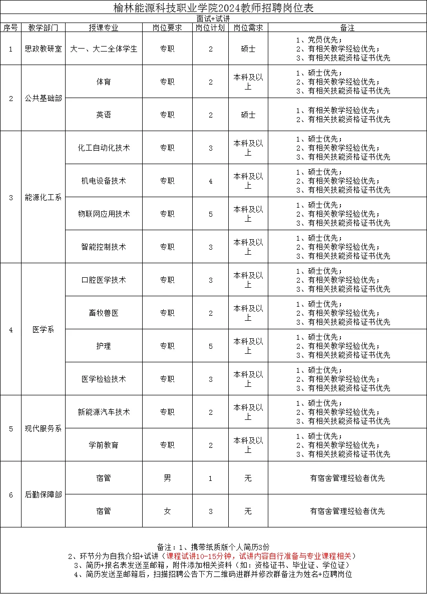2.應聘人員將個人信息發(fā)送至郵箱ylnykjzyxyjwc@163.com,郵件標題為“姓名+應聘崗位”,個人信息包括簡歷及《榆林能源科技職業(yè)學院教師應聘登記表》(見附件)。