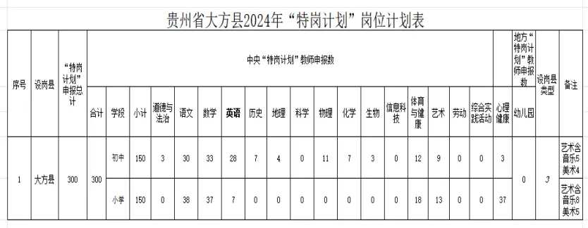 附件:1.《貴州省大方縣2024年“特崗計(jì)劃”崗位計(jì)劃表》
