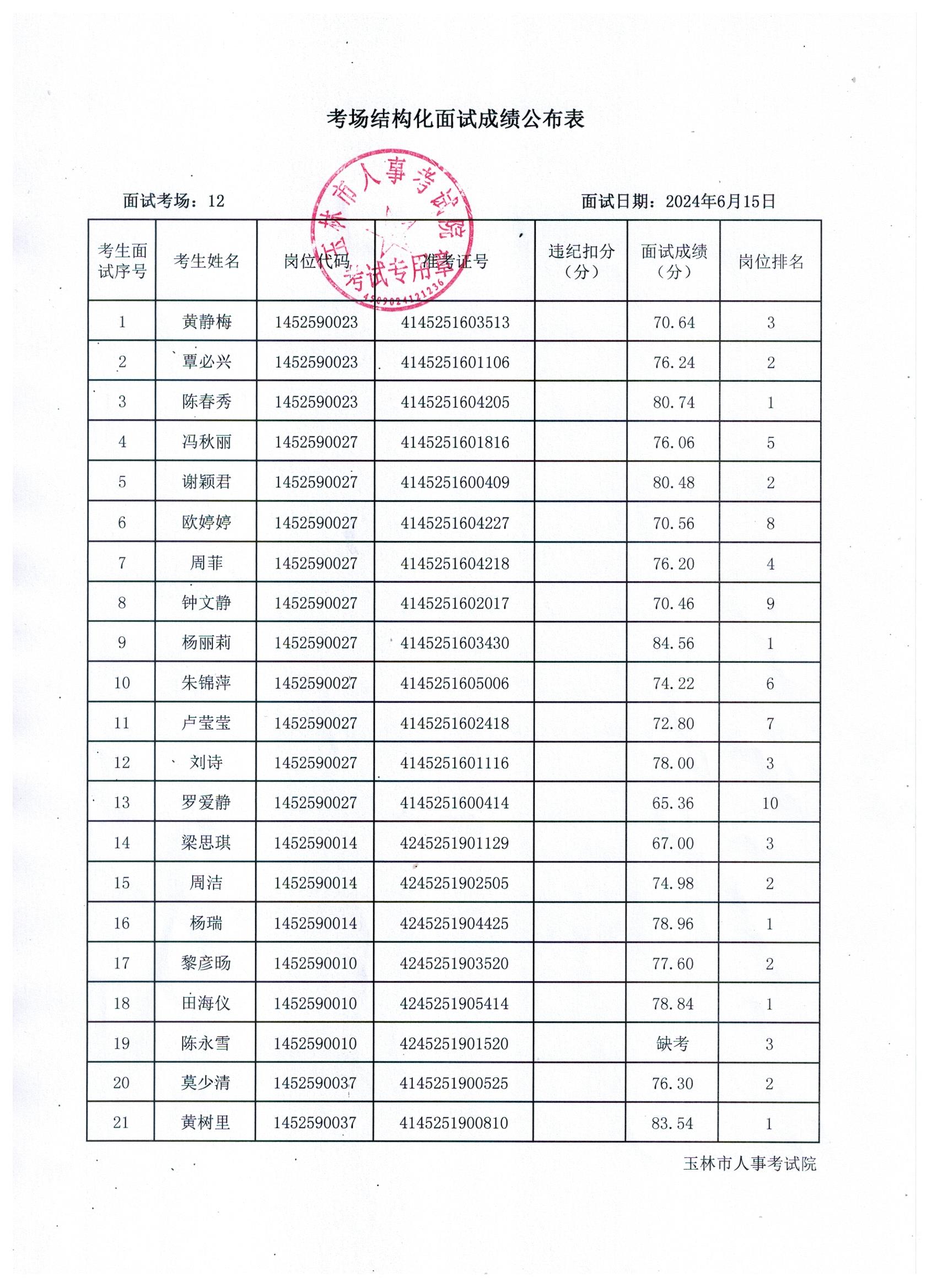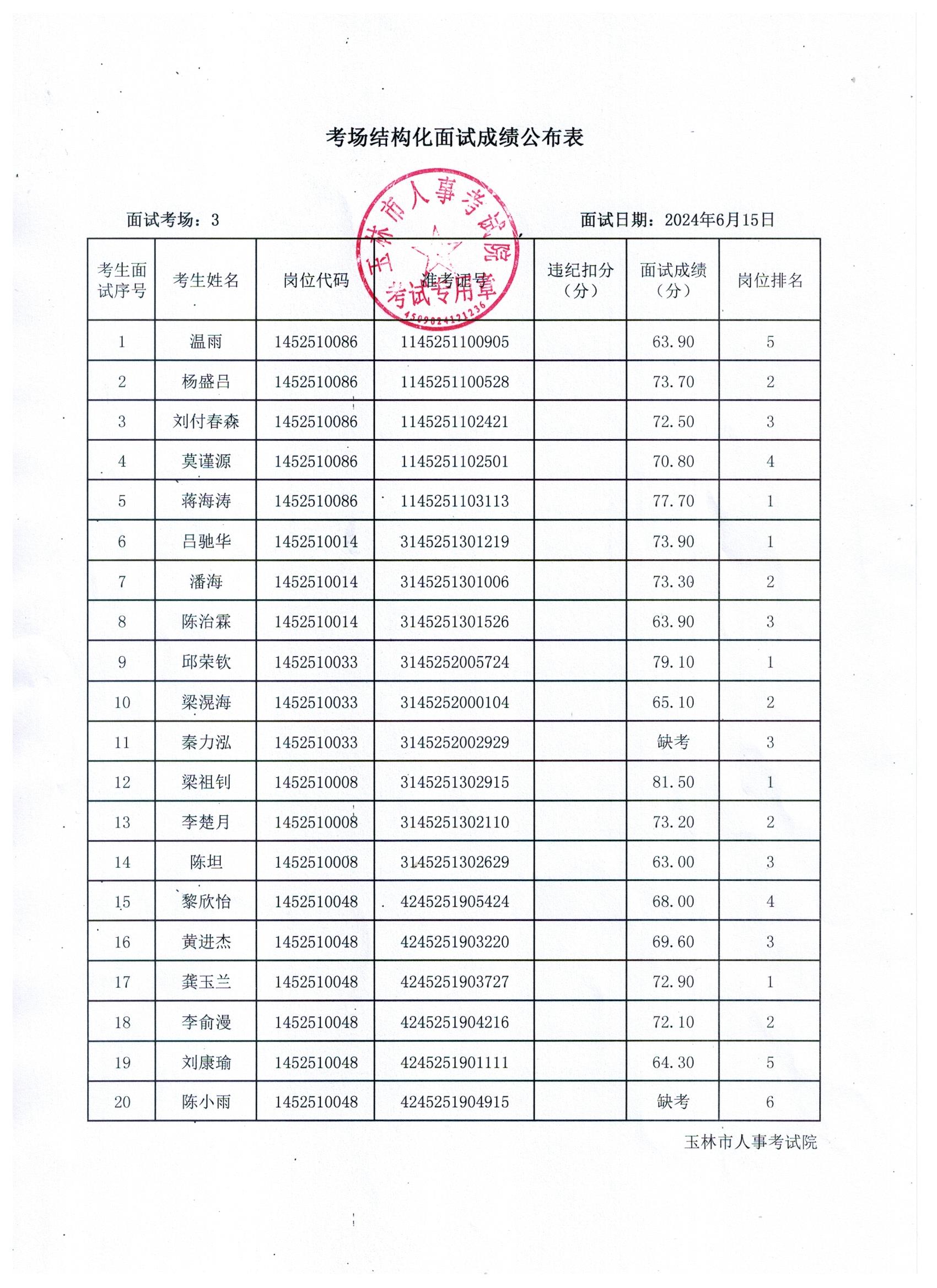 原文標(biāo)題:2024年玉林市直(含玉州區(qū)、福綿區(qū)、玉東新區(qū))事業(yè)單位公開招聘人員面試成績(jī)公布(6月15日)