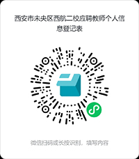 ②即日起至2024年7月25日,應(yīng)聘者填寫(xiě)《西安市未央?yún)^(qū)西航二校應(yīng)聘教師個(gè)人簡(jiǎn)歷》(掃描下方二維碼獲取個(gè)人簡(jiǎn)歷模板,未使用簡(jiǎn)歷模板視為簡(jiǎn)歷不合格)發(fā)送至郵箱2628071063@qq.com。郵件主題注明:學(xué)科+姓名+電話。