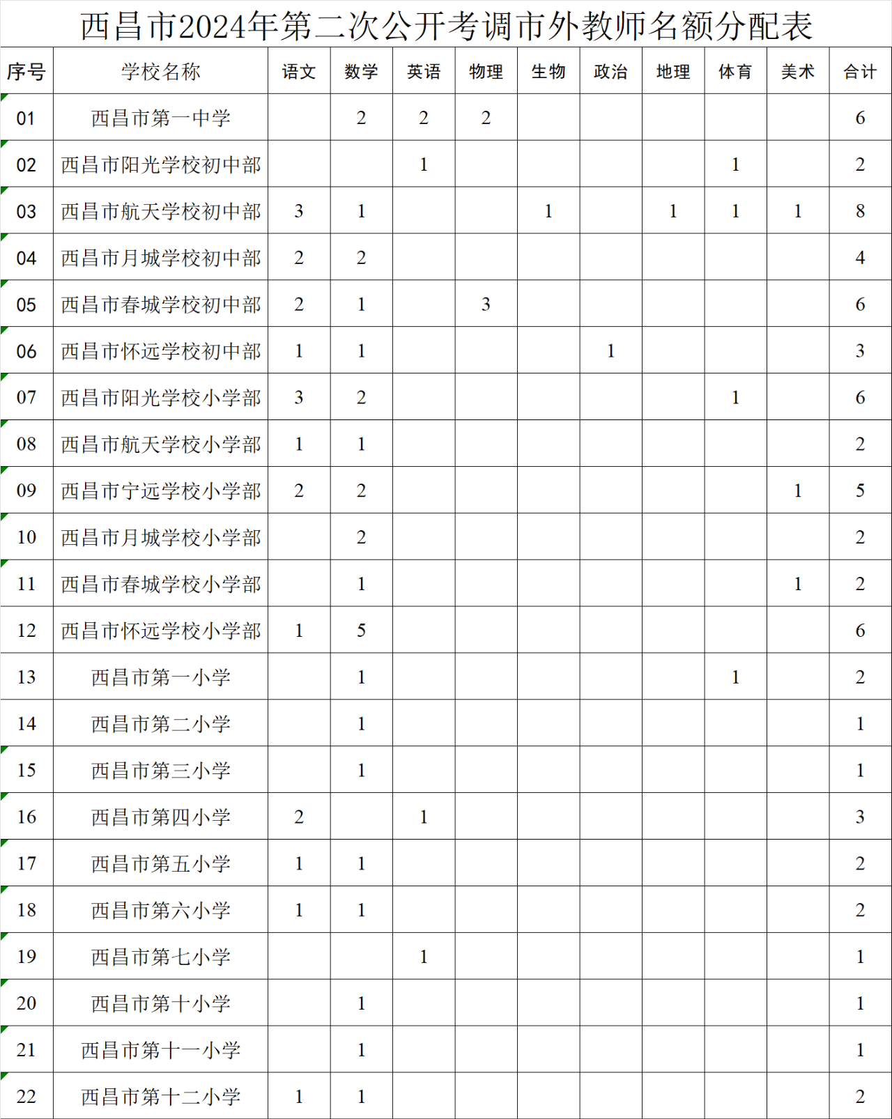 為促進全市教育事業(yè)健康發(fā)展,根據(jù)我市教育系統(tǒng)教師配置需求,引導教師合理流動,經市委、市政府研究決定,西昌市2024年第二次面向全國公立中小學公開考調一批普通中小學在編在職教師,公告如下。