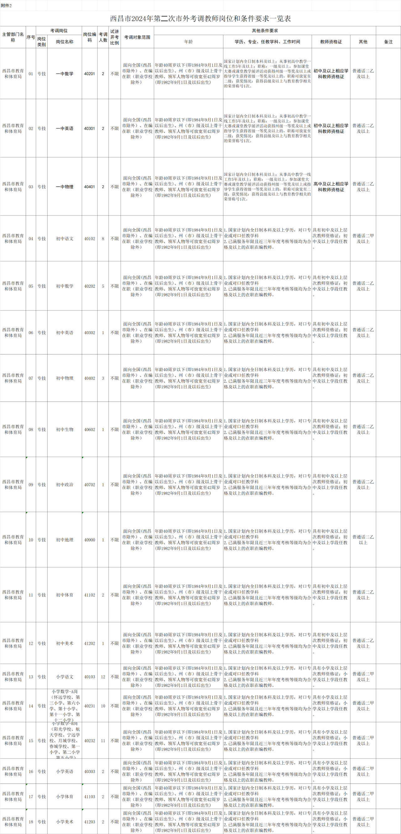 1.考調范圍:面向全國(西昌市除外)公立學校(職業(yè)學校除外)在編在職教師。