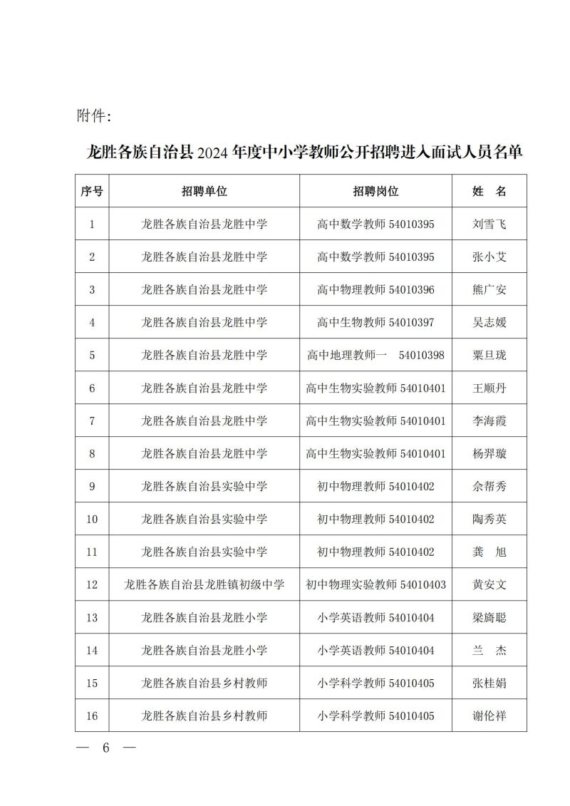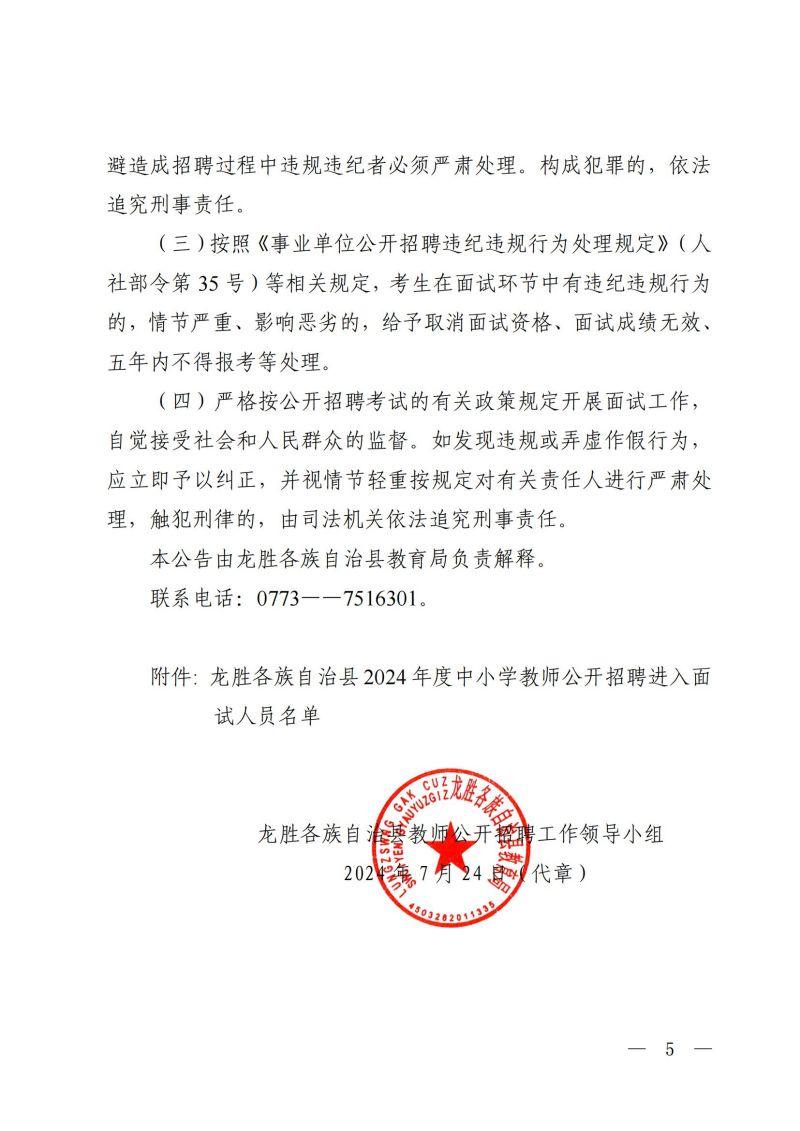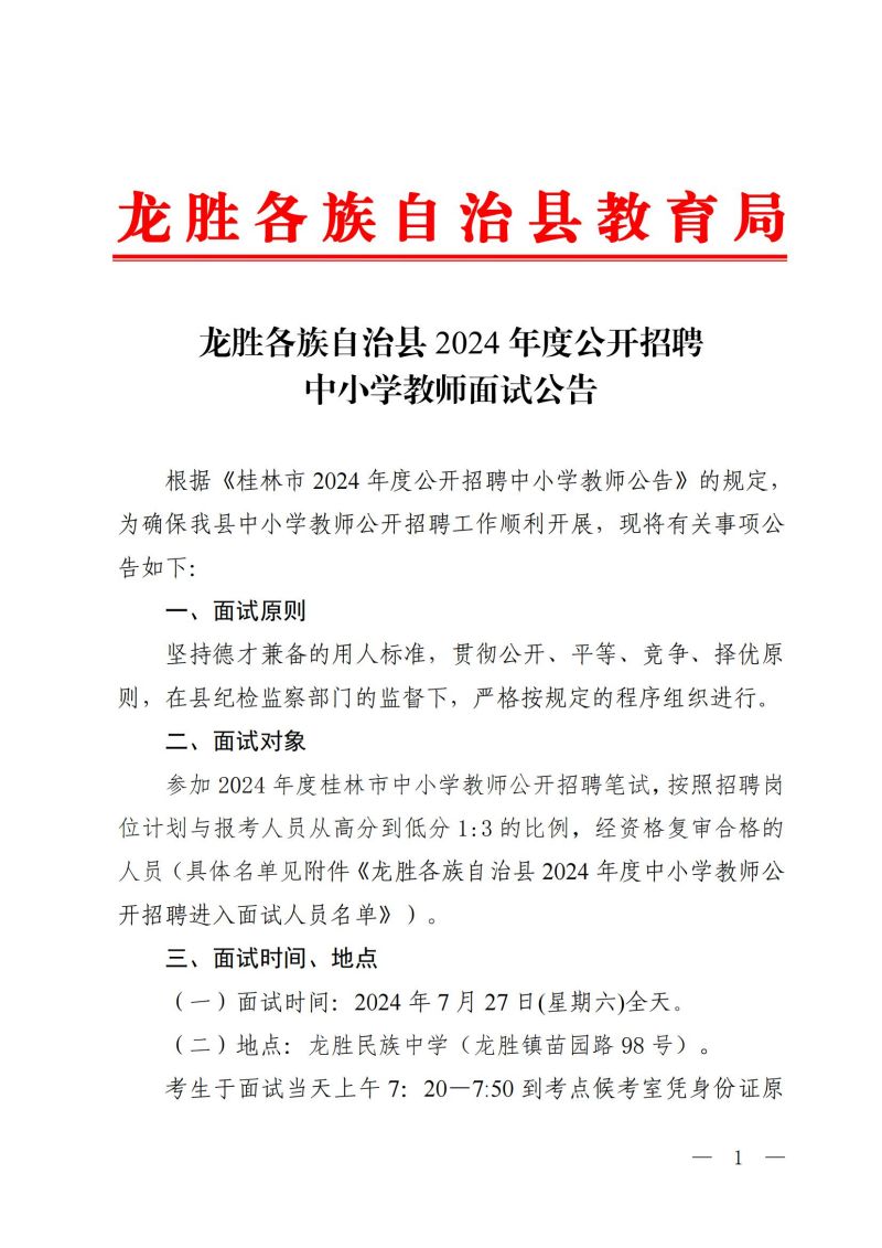 原文標題:龍勝各族自治縣2024年度公開招聘中小學教師面試公告_公告公示_桂林市教育局