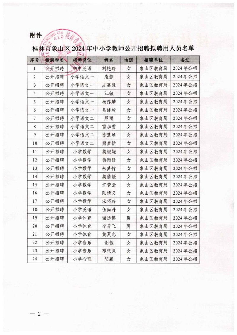 原文標題: 桂林市象山區(qū)2024年度中小學教師公開招聘擬聘用人員名單公示