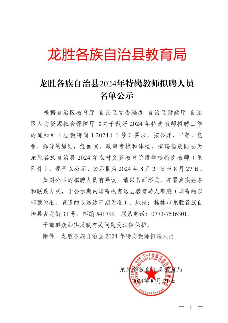 原文標題: 龍勝各族自治縣2024年特崗教師擬聘人員名單公示