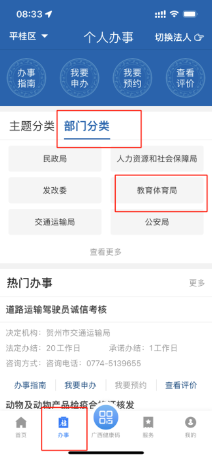 選擇下方“辦事→“部門(mén)分類→“教育體育局。