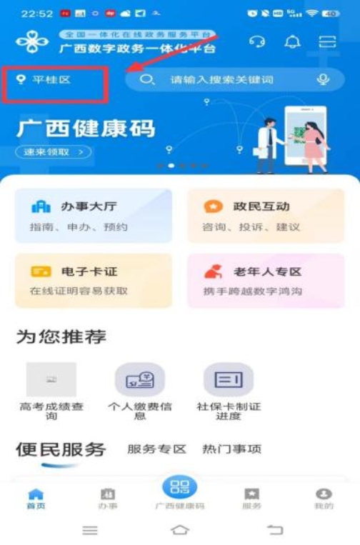 在市民手機(jī)上打開(kāi)“廣西政務(wù)APP,選擇“賀州市-平桂區(qū)。