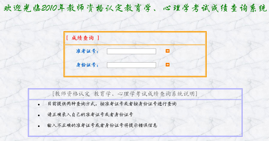 參加2010年度揚州市教師資格教育學(xué)、教育心理學(xué)考試的考生可以查詢考試成績,查詢方法為登錄揚州教育網(wǎng)(http://wwww.yzjy.com.cn/final/cjsearsh/2010teachercj/),或通過168聲訊臺查詢(16883857)。