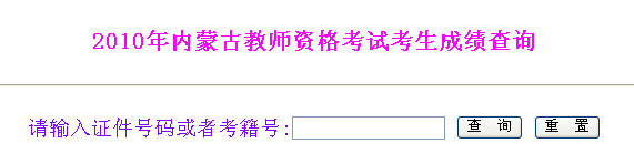 2010年內(nèi)蒙古教師資格證考試成績查詢?nèi)肟?/strong>