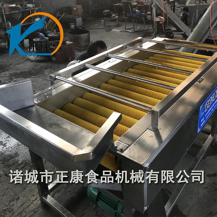 機(jī)架采用SUS304不銹鋼制作,符合食品出口標(biāo)準(zhǔn),流水線中各單機(jī)可根據(jù)用戶各自不同的加工特點(diǎn)量身定制,很大程度滿足工藝要求,清洗機(jī)采用高壓氣泡水浴清洗,清洗能力大,洗凈率高且不損傷物料,經(jīng)過(guò)旋翻至輸送網(wǎng)帶,在網(wǎng)帶上進(jìn)行高壓水流清洗傳送到挑選平臺(tái),進(jìn)行公共分揀。